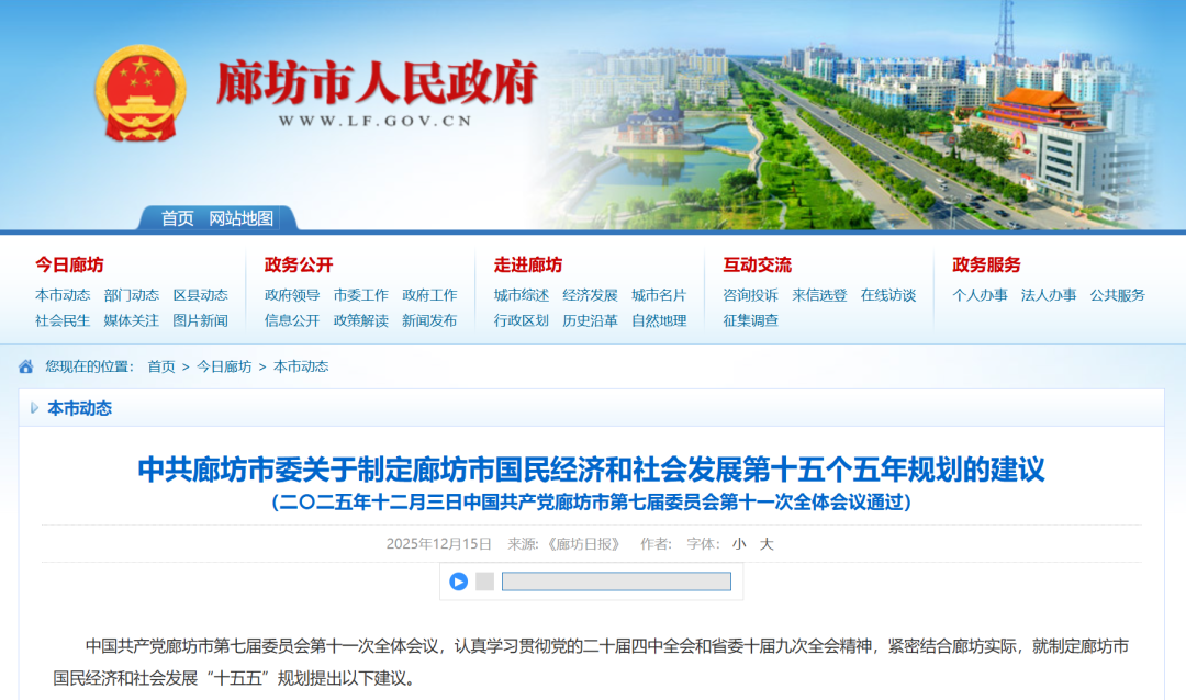 (二〇二五年十二月三日中国共产党廊坊市第七届委员会第十一次全体会议通过)
